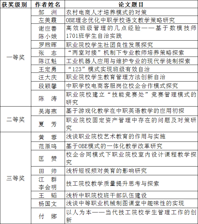 接市教科院通知,我院教职工在2019年度株洲市职业教育与成人教育学会优秀论文评选中喜获佳绩,邹洲等10人获市一等奖,吴海燕等2人获市二等奖,黄蓉等8人获市三等奖。