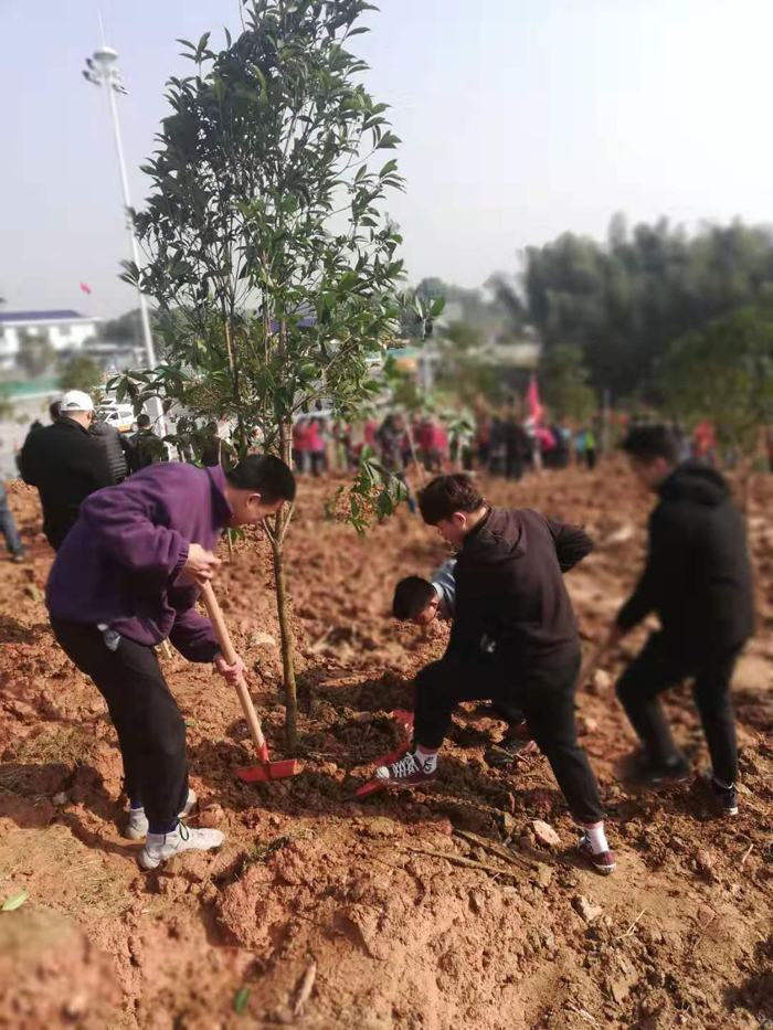 学生们分成四个小组有条不紊地进行准备工作,领工具、拿树苗、选地整地。手持铁锹,干劲十足,将一棵棵充满生机和希望的树苗植入地里的同时也植下了自己绿色的希望之春。上午11点,各个小组均完成了自己的植树任务,活动取得圆满成功。