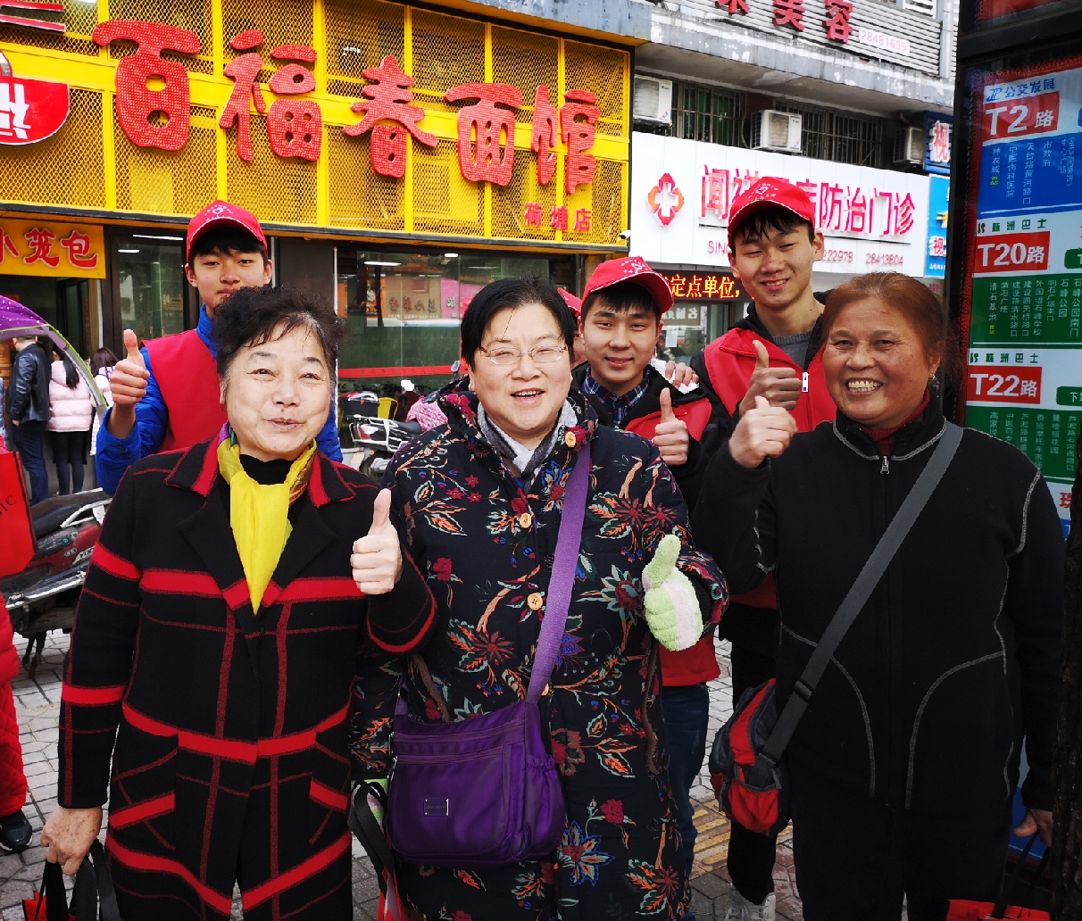 市民阿姨们竖起大拇指为我院志愿者们点个“赞”