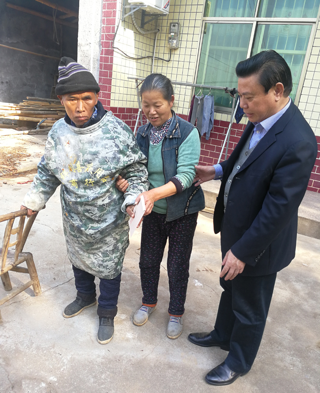 院长陈洪星(右一)到贫困户汤小年家中走访慰问