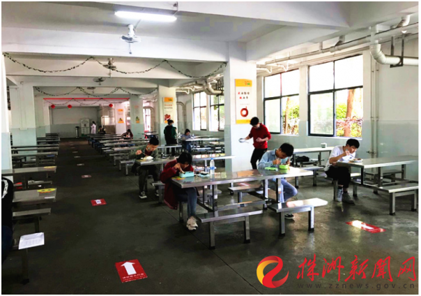 ▲ 学生在固定餐桌,错时、有序就餐。(通讯员 供图)