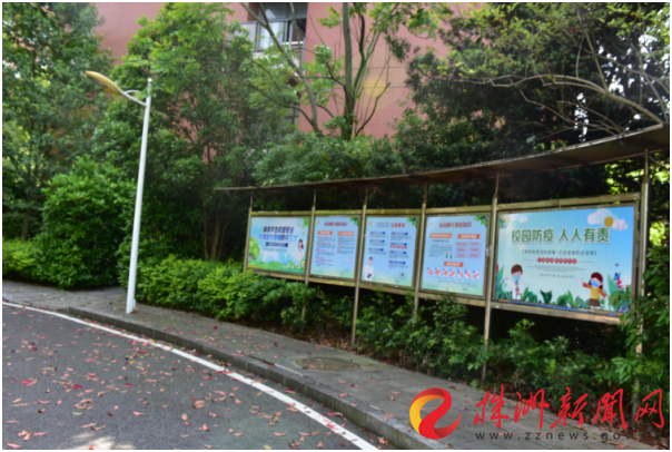 ▲ 防疫宣传在校园随处可见。(记者 文樱 摄)
