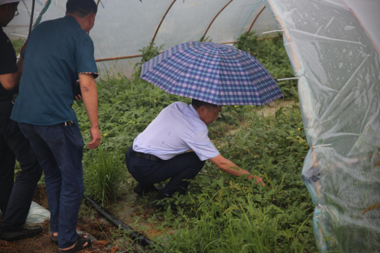 随后,张格林一行来到受到连雨影响滞销的西瓜地,与贫困瓜农详细了解今年西瓜的长势和收成,倾听他们的实际困难,并带头自费购买西瓜。
