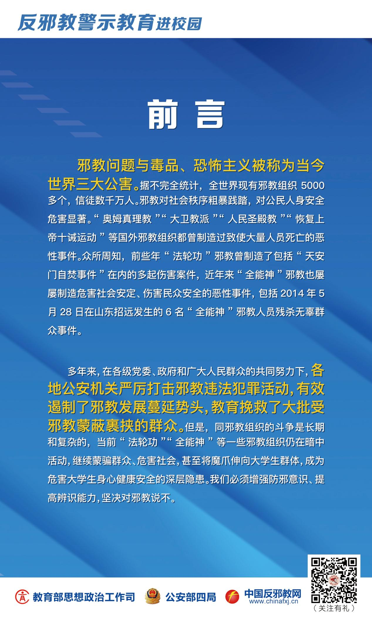 2021年4月15日是第六个“全民国家安全教育日”,中国·MK体育(恩波利)官方网站邀您一起参与“对邪教说不”活动,大家可以关注“中国反邪教”微信公众号,点击“我要签名”栏目,登录后参加“对邪教说不”签名、反邪教知识答题、反邪教趣味小游戏、反邪教资料宣传和抽奖活动,让我们通过此次活动的开展,增强国家安全意识,提高反邪教意识和能力,真正成为“总体国家安全观”的践行者。