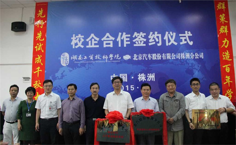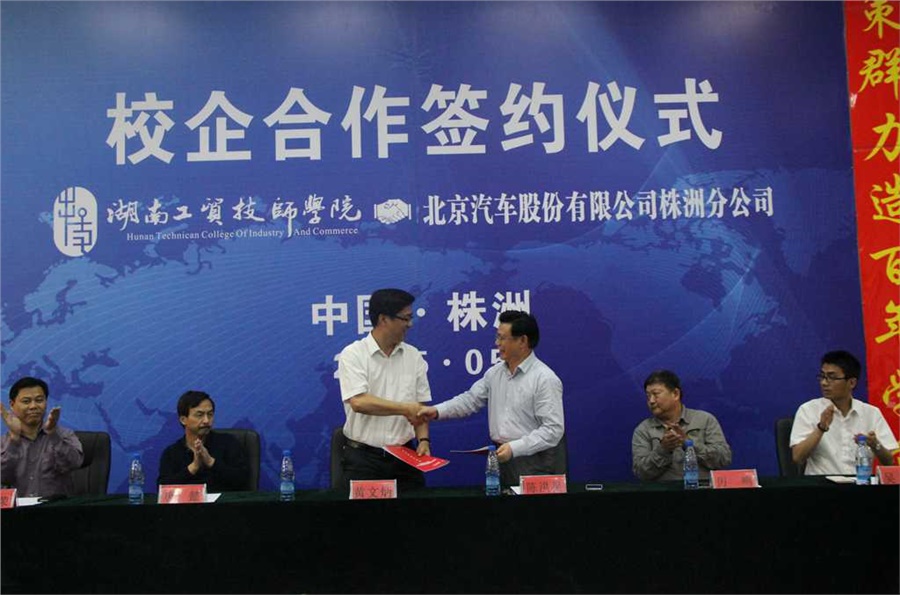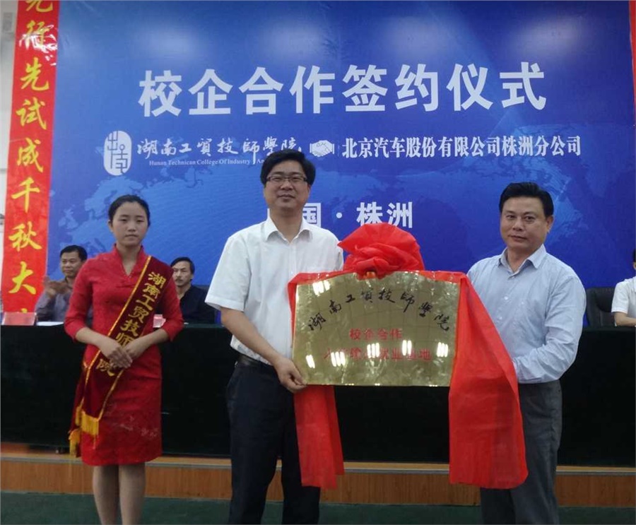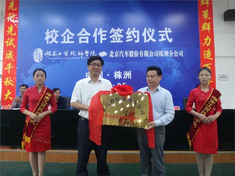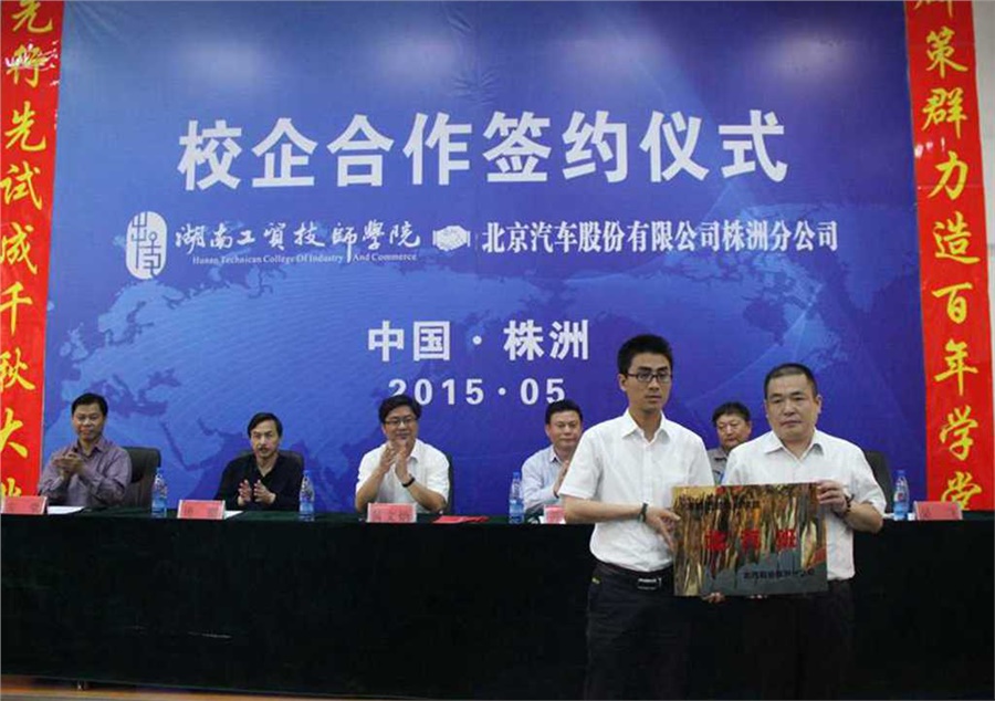 5月5日下午3点,中国·MK体育(恩波利)官方网站与北京汽车股份有限公司校企合作签约、挂牌仪式在中国·MK体育(恩波利)官方网站继志楼阶梯教室隆重举行,中国·MK体育(恩波利)官方网站中层副职以上人员、北汽株洲分公司嘉宾、北汽定单班全体汽修专业学生、全体汽修专业教师参加了签约仪式,仪式由中国·MK体育(恩波利)官方网站党政办主任谢穗主持。仪式上,中国·MK体育(恩波利)官方网站院长陈洪星,北汽株洲分公司党委书记、总经理黄文炳代表校企双方签订了校企全方位战略合作框架协议和订单培养协议并相互授牌。此次签约既深化了双方产、学、研、用的全面合作,又加速推进了双方携手共赢进程,为更好服务地方经济建设,为促进株洲汽车整车生产及零部件千亿产业集群发展提供高技能专业人才支撑具有重要战略意义。