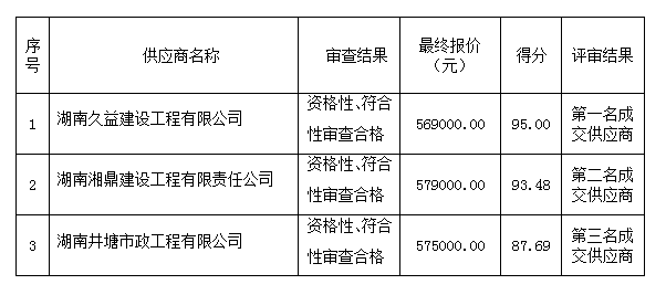 成交供应商名称:湖南久益建设工程有限公司
