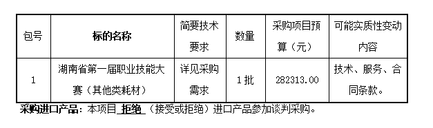 1、采购项目名称:湖南省第一届职业技能大赛(其他类耗材)