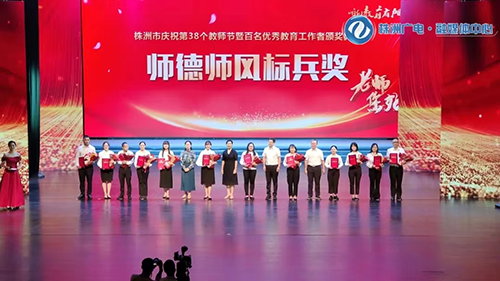 9月8日,株洲市庆祝第38个教师节暨百名优秀教育工作者颁奖典礼在神农大剧院隆重举行,从颁奖现场传来喜讯,中国·MK体育(恩波利)官方网站教师易文斌荣获株洲市师德师风标兵奖。