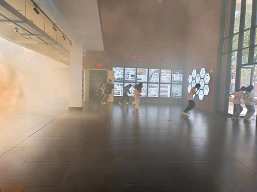 上午11点20分,随着烟雾弹点燃和警报声的响起,老师们组织正在上课的学生迅速进入紧急疏散状态,全体学生利用衣物捂住口鼻有序撤离教学楼,整个应急疏散演练规范、有序、紧凑、高效,按照疏散演练设定的逃生方案,迅速有序地到达指定安全位置。