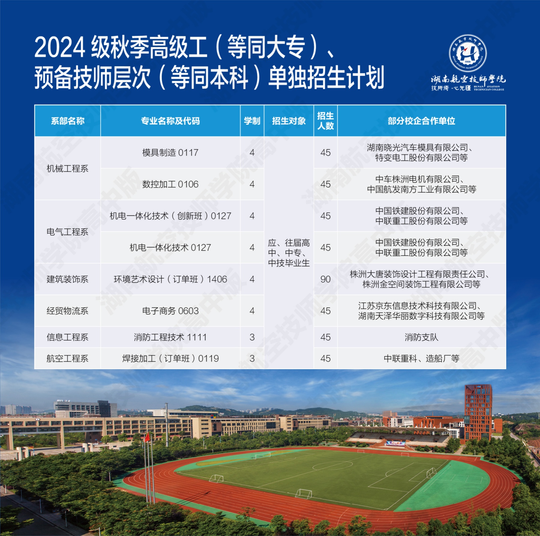 湖南航空技师中国·MK体育(恩波利)官方网站2024级高级工、预备技师层次单独招生计划(面向高中、中专、中技毕业生)