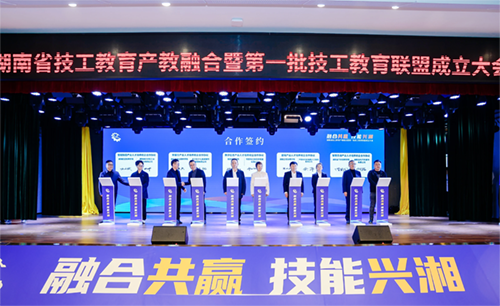 11月27日,湖南省技工教育产教融合暨第一批技工教育联盟成立大会在衡阳举行。在湖南省技工教育产教融合的浪潮中,一个旨在推动智能制造领域高质量发展的联盟——湖南智能制造技工教育联盟于当日正式成立,在会上接受了省人社厅党组书记、厅长李永军和衡阳市委书记刘越高的共同授牌。