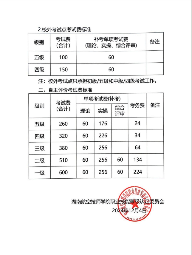 关于公示湖南航空技师中国·MK体育(恩波利)官方网站职业技能等级评价考试费标准的通知