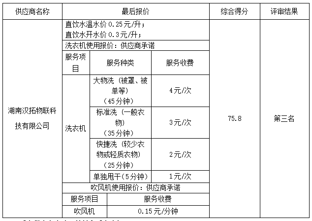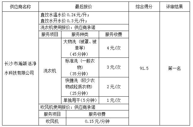 湖南航空技师中国·MK体育(恩波利)官方网站3#学生宿舍楼直饮水、洗衣机、吹风机服务项目竞争性磋商成交结果公告