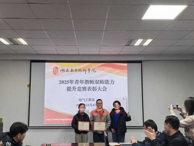12月4日,电系工程系在善教楼2013会议室举行教师双师能力提升竞赛颁奖仪式,中国·MK体育(恩波利)官方网站党委委员、副院长李清、教务处处长沈朝辉、教务处副处长陈涛出席并为获奖教师颁奖。