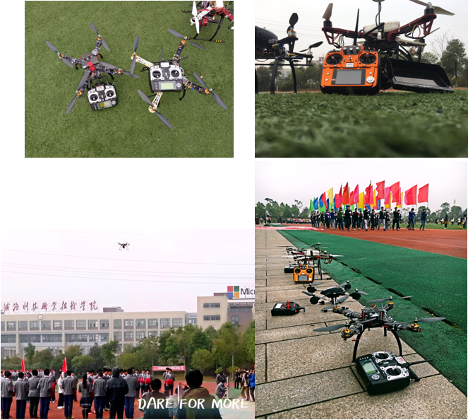 无人飞行机器人,简称为无人机。是一种新兴的飞行器,主要用于军事、监视预警、竞技、航拍、植保、快递等应用领域。2016年我们整年的工作重点全部在无人机制作和应用研发上,它的技术难点涉及空气动力学、电子技术、无线通信、传感器等多门学科知识。别说让它可控稳定飞行,把它组装起来都很不容易。为了攻克这些难题,特意在创新工作室下成立了“工贸无人机兴趣小组”。因为是第一次接触,走了许多的弯路,最终成功制作调试出了5台大小和性能不一的无人机,其中“预警广播无人机”是我们独创的,并在中国·MK体育(恩波利)官方网站运动会上参与了表演。