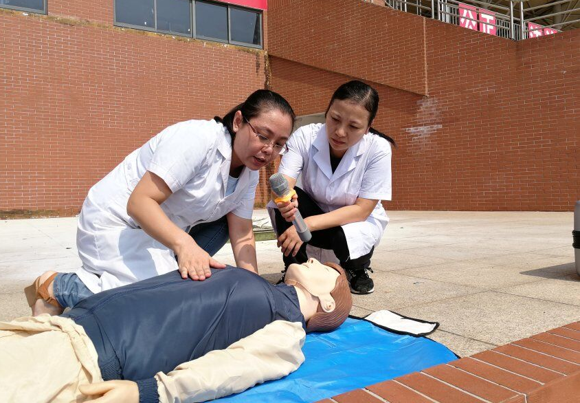 疏散演练结束后,省直中医院孟庆琳医生还向全体新生现场讲解和示范了心肺复苏术的操作和注意事项。(学生工作和安全保卫处 供稿)
