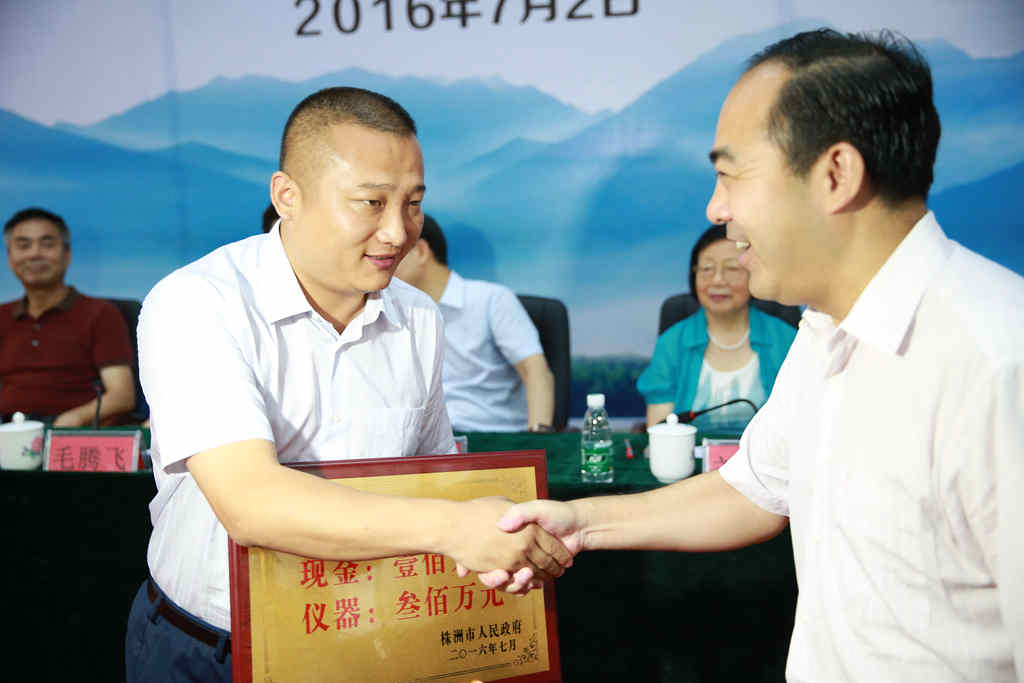 仪式上,阳卫国代表株洲市政府向省政协委员、湖南省山东商会会长李涛回赠荣誉牌匾。