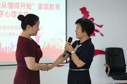 本次活动特邀株洲市家庭教育研究会会长、与爱桐方家庭教育联合创始人、国际生命数字高级论码师、资深两性关系咨询师、国家二级心理咨询师唐娜老师,针对大家关心和困惑的家庭教育方法、家庭关系处理以及育儿问题,与大家进行了现场分享和交流。